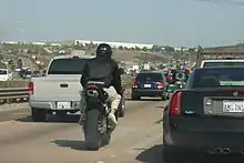"There is evidence (Hurt, 1981) that traveling between lanes of stopped or slow-moving cars (i.e., lane splitting) on multiple-lane roads (such as interstate highways) slightly reduces crash frequency compared with staying within the lane and moving with other traffic."