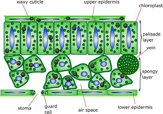 6. The spongy layer has air spaces to make it easier for gases to circulate in the leaf.