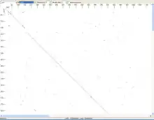 Dot plots can be generated in GENtle between two DNA sequences, which can be selected from drop-down lists in the toolbar. The calculation of the dot plot will start immediately and take a few seconds, depending on the length of the sequences.