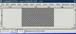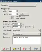 First, we create an empty image where we can arrange the other images as needed. For this purpose we use the File > New... menu entry. Since the original images are both 124×139 pixels big, we make the new image 248×139 pixels large. Since we don't want to assume anything about the images' colors, we choose to fill the new image with transparency only.