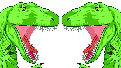 Only one dinosaur head is visible, the other one is hidden below. Only one dinosaur head is visible, the other one is hidden below.