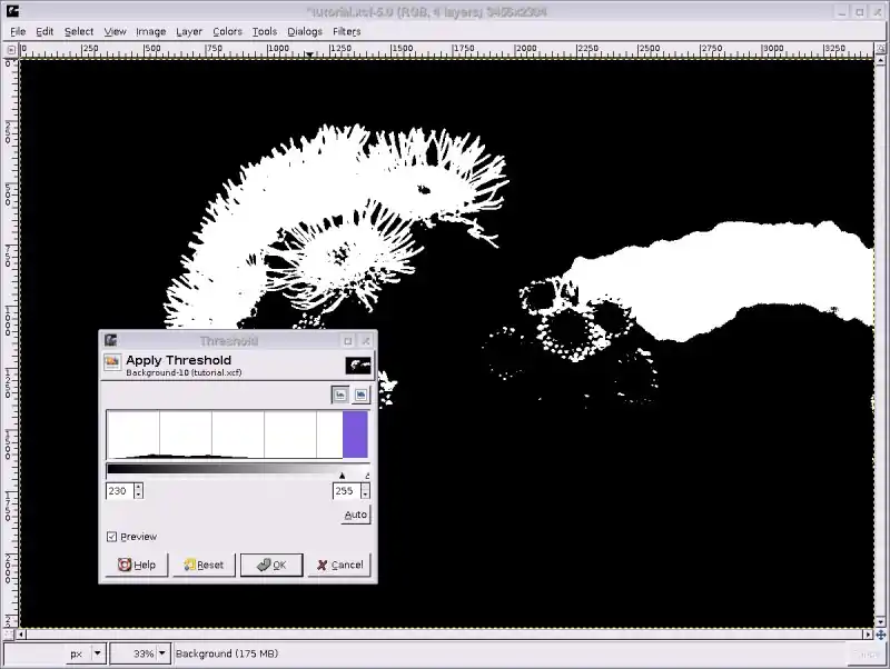 Now use the threshold tool on the duplicated layer to make the overexposed areas pure white