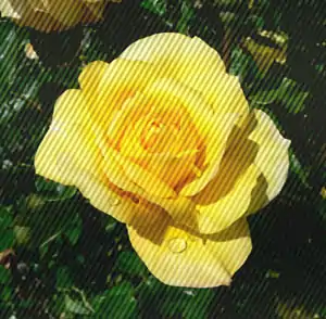 On the right, you see the picture of a flower with a coherent noise pattern on it. One might get a picture like this using a scanner. It is evident that the disturbance we want to remove is all over the picture, so it would be very difficult to remove with traditional means, such as blurring, sharpening or cloning. It is regular pattern, so it should be easy to remove in the frequency domain. Unfortunately, removing the coherent noise will cause the removal of some information that is contained in the same frequencies as the pattern. It is very difficult to preserve that information, and it will not be considered in this tutorial.
