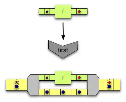 - firsttakes two inputs side by side. The first one is modified using an arrow, while the second is left unchanged.