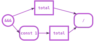 (total &&& (const 1 ^>> total)) >>> arr (uncurry (/))