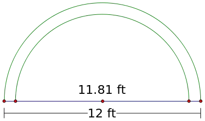 Since there are 13 dots, this angle is . The length of the chord then is: - 2*1.2sin(13π/32)2.296656806