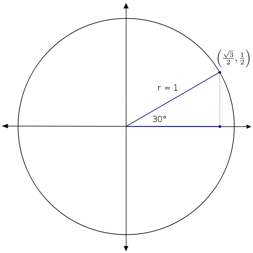 - In the lesson you learned that the terminal side of the angle 30° intersects the unit circle at the point . Here you will prove that this is true.