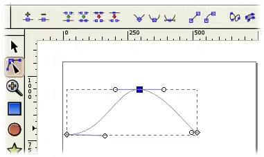 These handles allow you to change the shape of the curves between the nodes. Notice that a list of node tools appear at the top. You can use these to change the nodes. We will not go into detail about these tools in this beginners tutorial.