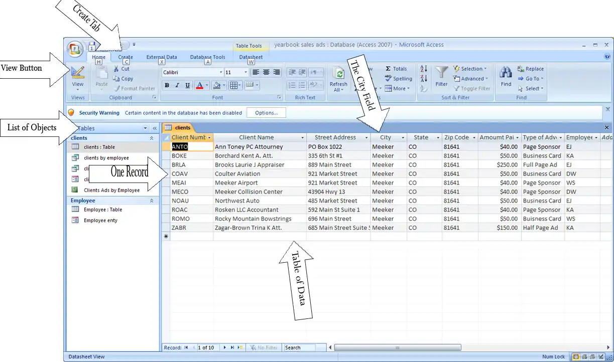Primarily, databases are used for collecting data and organizing, one may wonder what instances this may be used for. Some examples of databases are Microsoft Excel or Access. For an example of what these databases could be used for we can go with a situation: you are having a wedding and need to make an invitation list. For a process like this, users can utilize Microsoft Excel because their database will not have many types of transactions and should not become too uncontrollable. However, if this were to happen, Access would be more compatible with the material needed. Access is basically just a more advanced version of Excel that is only needed for uncontrollable databases or ones that need to be directly linked to others in order to access information in a systematized way. Either database can help you make informed decisions and can also help you make sense of the data in different ways. The storage in Access is not repetitive so it can essentially save space and improve accuracy.[3] Access also has different templates to choose from so that you do not have to create a new database from scratch. There is also a relationship you can establish between the tables so that you can navigate easier. For creating a wedding invitation list: you can decide who to invite and who not to invite to the reception and put those people in separate tables.[4]
