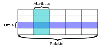 Column Attribute or field A labeled element of a tuple, e.g. "Address" or "Date of birth"