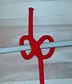 If a stronger and even more secure knot is required an extra riding turn can be added to the basic knot to form a Double constrictor knot. It is particularly useful when tying the knot with very slippery twine, especially when waxed. Adding more than one extra riding turn does not add to its security and makes the knot more difficult to tighten evenly.
