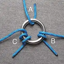 - The end of the rope not involved in making the knot, often shown as unfinished.