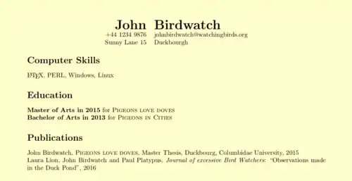 A curriculum vitæ or résumé has a universal requirement: its formatting must be flawless. This is a great example of cases where the power of LaTeX comes to the front. Thanks to its strong typographical stance, LaTeX is definitely a document processor of choice to write a CV.