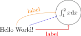(3,1) node[circle,draw](y) {$\int_1^2 x \mathrm d x$};