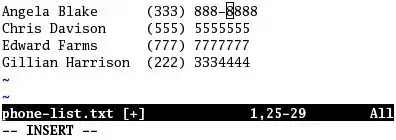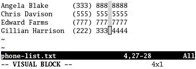 - A pair of line numbers, such as '3,5' meaning work on lines 3 to 5 inclusive. Either number can be replaced with ., standing for the current line or $ standing for the last line. So .,$ means from the current line to the end of the file and 1,$ means the same as %. Additionally simple arithmetic may be used, so .+1 means the line after the current line, or $-5 means 5 lines before the last line.