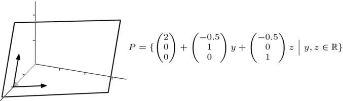 The translation from such a description to the vector description that we favor in this book is to think of the condition as a one-equation linear system and parametrize .