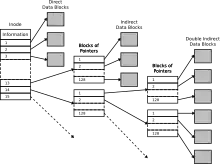EXT filesystem: It uses inode(Index node) table. In inode there are the files' description and the place of the data blocks, wihtout filename. There is only one inode for each file. Files with bigger size may contain multiple catalog-entries, which contains the filename. Inode contains the name, description, creation date, permissions, owner(UID), group(GID), and how many links are attached to it. (so it can do much more than FAT) It can do soft-link and hard-link, which is one of the biggest advantage of EXT file system to FAT.