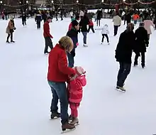 A mother mentors her child on the ice