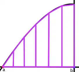 Using the notion of integration as "finding the area under the function curve", we can denote the integral over the ith segment of the interval, from to as: