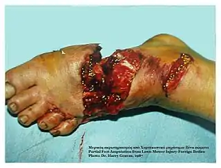 - Missile fragments. Sharp, jagged pieces of metal, wood, or glass of almost any size can cause lacerated wounds with much tissue damage. These fragments usually leave no wound of exit (remain embedded in the tissue), so foreign bodies will remain which must be surgically removed.