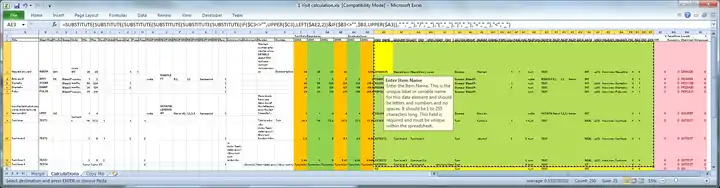 In the calculations sheet, select all yellow cells from row C to the last entry with a valid item name