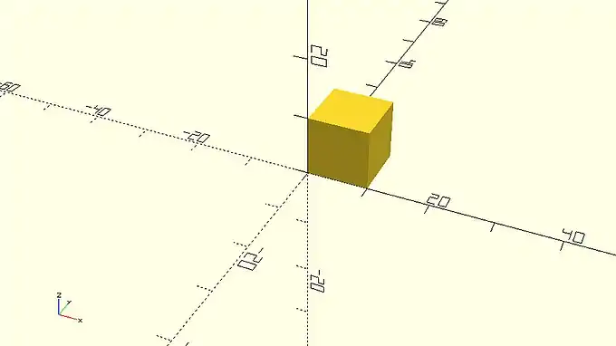 You should notice that every cube is created on the first octant. You can define an additional parameter named center and set it equal to true in order to make the cube centered on the origin. The complete statement is the following.