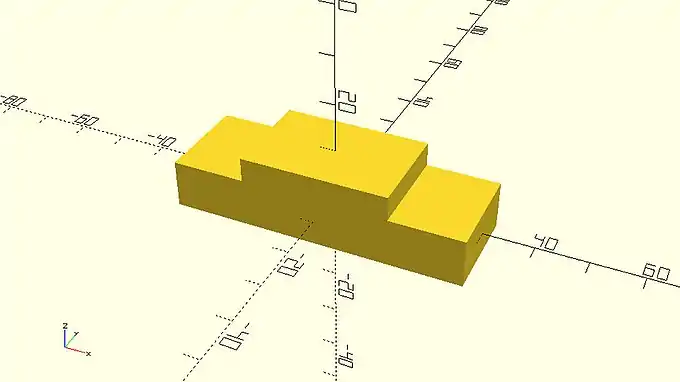 On the example above, the second cube sits exactly on top of the first cube. This is something that should be avoided as it’s not clear to OpenSCAD whether the two cubes form one object together. This issue can be easily solved by always maintaining a small overlap of about 0.001 - 0.002 between the corresponding objects. One way to do so is by decreasing the amount of translation along the Z axis from 10 unit to 9.999 units.