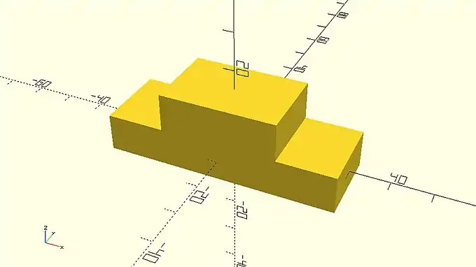 | a_smaller_cube_covered_by_a_bigger_cube.scad cube([60,20,10],center=true); cube([30,20,10],center=true); |