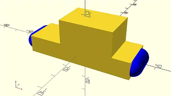 | long_car_body.scad use <vehicle_parts.scad> $fa=1; $fs=0.4; base_length = 80; top_length = 50; top_offset = 10; body(base_length=base_length, top_length=top_length, top_offset=top_offset); |