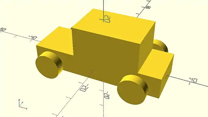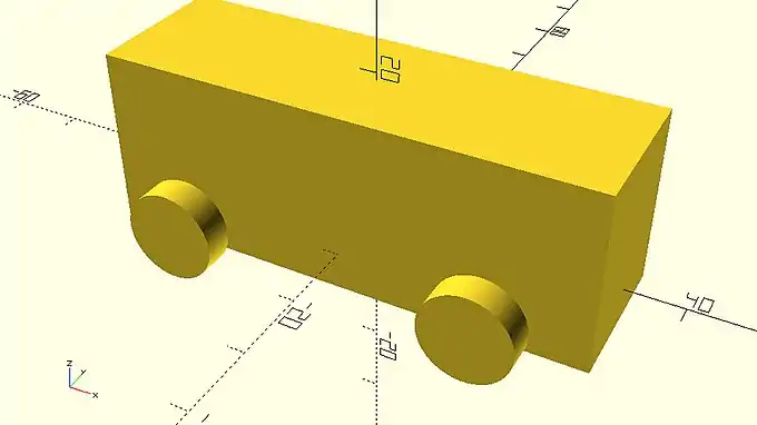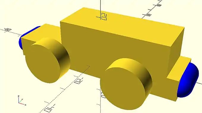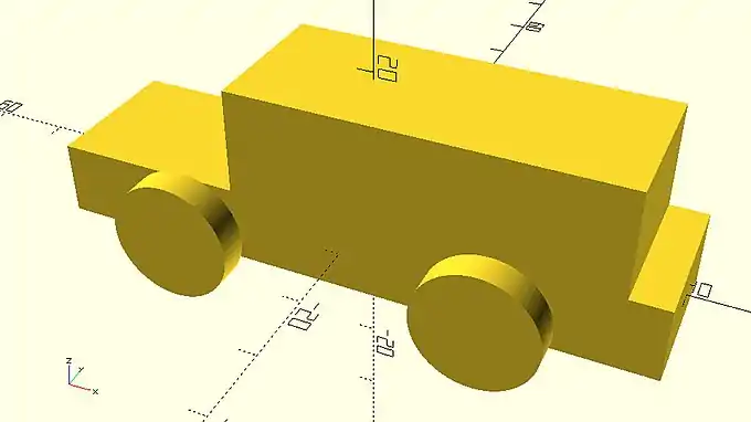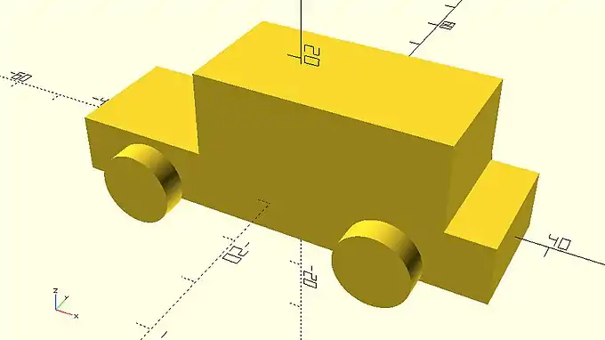 | car_with_short_body_and_small_wheels.scad … long_body = false; large_wheels = false; … |