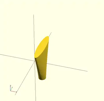 linear_extrude(height = 10, center = true, convexity = 10, scale=3) translate([2, 0, 0]) circle(r = 1);