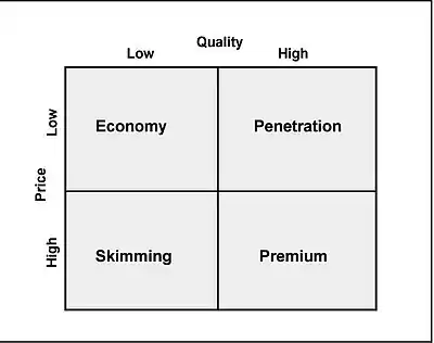 - Price Skimming: You can charge a high price because you have a substantial competitive advantage, or because there is a shortage in the market. However, the high price is not sustainable, it actually attracts new competitors into the market, and the price inevitably falls due to increased supply.