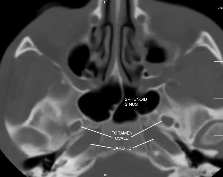 II = Optic Nerve: 25-50% with bony dehiscence into sphenoid sinus.