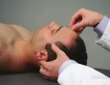 Occipital condylar decompression The patient is supine. The physician's index and middle fingers approsimate the condylar processes and initiate a gentle cephalad and lateral force.