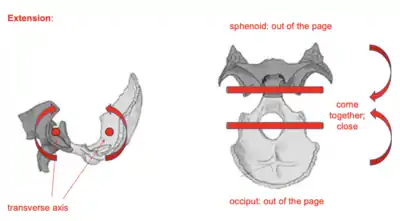 Extension Opposite rotation of the sphenoid and occiput about two transverse axes passing through sphenoid and occiput