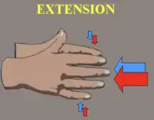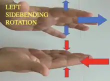 • Ipsilateral index finger goes upward and outward and ipsilateral fifth finger goes downward and outward.