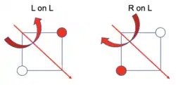 | Right on left (R on L) | Left | Positive | Left | Right |  R on L |