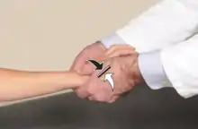 | Traction/Distraction in Abduction | Place the patient's hand on the physician’s shoulder and milk the deltoid muscle by interlocking the fingers distal to the acromion process |  8 - Shoulder Traction |