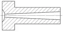 Sprue bushing scheme: on the left, the indentation for the nozzle of the press.