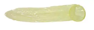 • Before removing the condom, the outer ring should be squeezed and twisted (while the wearer is still lying down, if applicable) to ensure that semen does not leak out of the pouch. Pull to remove the condom.