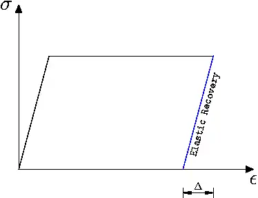Note that material which exhibit such behavior will show what is known as elastic recovery, where the sample will show some tendency to the earlier state. In the above image, the amount of recovery is Δ after the load has been removed. Note that there is a residual deformation in the material in the unloaded state.