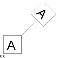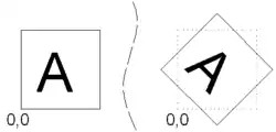 - The original rectangle (left) is rotated around its center. The result is displayed to the right. The dotted rectangle show the location of the original rectangle.