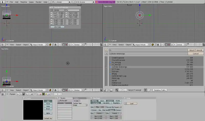 Now save your work (Name your file 'cylinder') and export the model to Trainz. File/Export/Trainz Export. Copy the cylinder.im file, texture and texture.txt file into a wagon object clone such as kuid:86627:1792 available on the Trainz Download Station. The wagon object should show up in Trainz. Note the sample kuid has two cylinders so if you see one you have been successful.