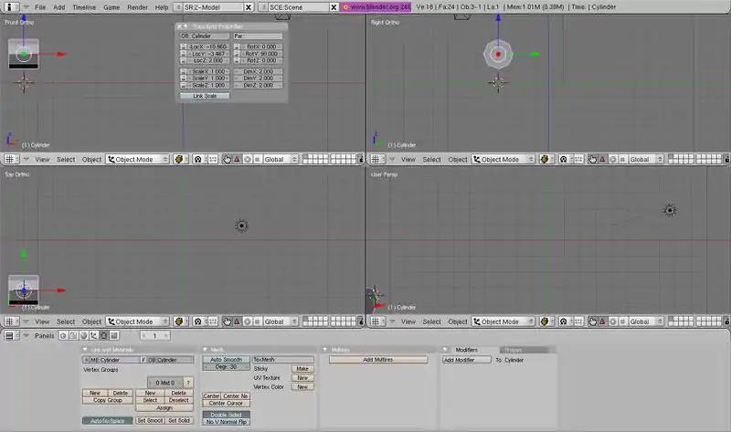 Step 1: After starting Blender, delete the default cube. Press Space then create a cylinder of 8 sides. Press N, which displays the Transform Properties dialog.