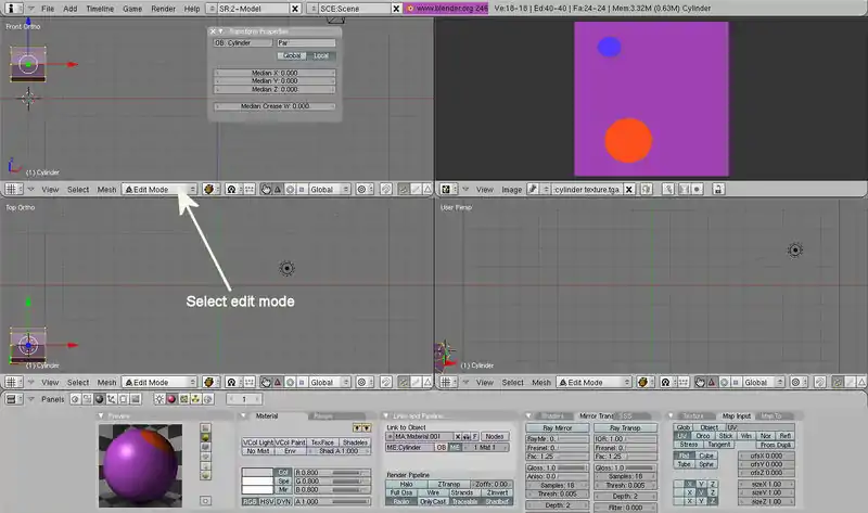 Step 8: In order to map the texture, we have to unwrap the mesh in Edit mode. Change from Object mode to Edit mode by pressing Tab ↹.