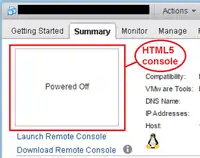 For clarity, here is how the two consoles are accessed from a VM's summary tab.