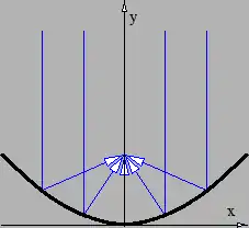Figure 3.16: Focusing of parallel rays by a parabolic mirror