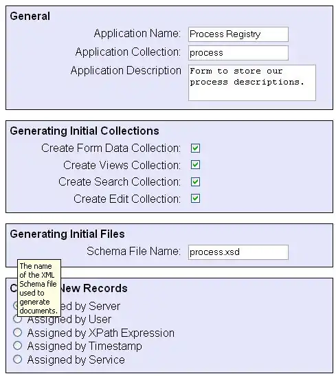 This form starts asking a series of questions, some of which are input fields, some check boxes and some text descriptions. Some input fields are referenced later in the application using binding rules. These binding rules are the conventional behavior of the application.