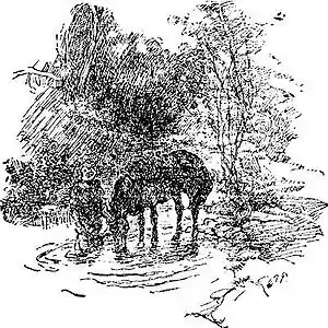 We went, cautiously, a few steps nearer. She threw up her head and looked at us so wildly for a moment that I should hardly have known her for my cow. She was, indeed, for the time being, a wild creature of the wood. She made a low sound and advanced a step threateningly.