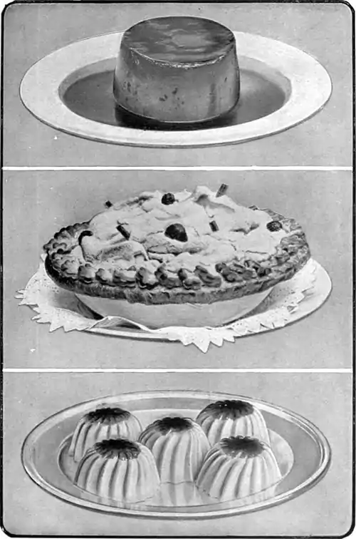 1. Caramel Pudding. 2. Cocoanut Amber. 3. Ginger Creams.